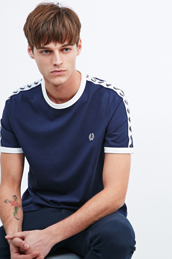 Fred perry taped ringer t shirt men s t shirt in blue.